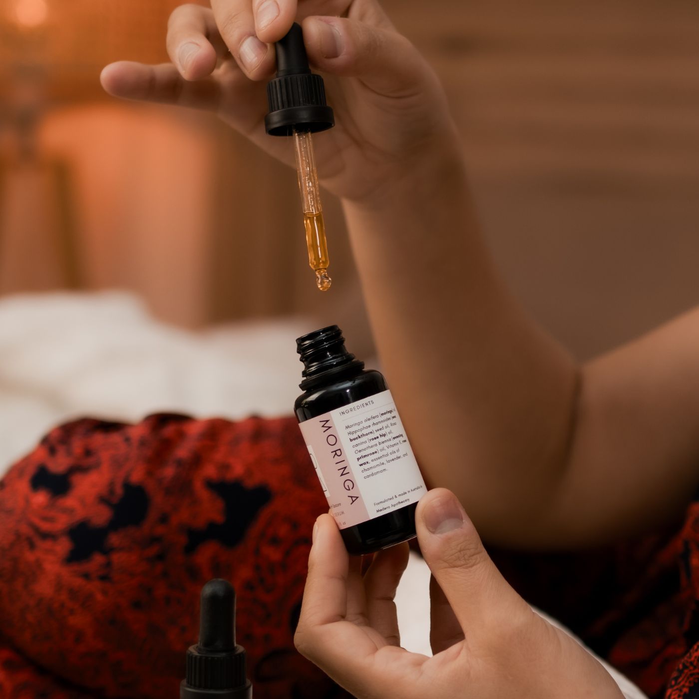 Absolutely! Our serum works well with other skincare products. It’s perfect for layering under moisturizers or sunscreen and complements your existing routine seamlessly. Allow the goodness of Moringa Face Serum to seep into your skin for at least 10 minutes before applying a moisturiser or sunscreen.